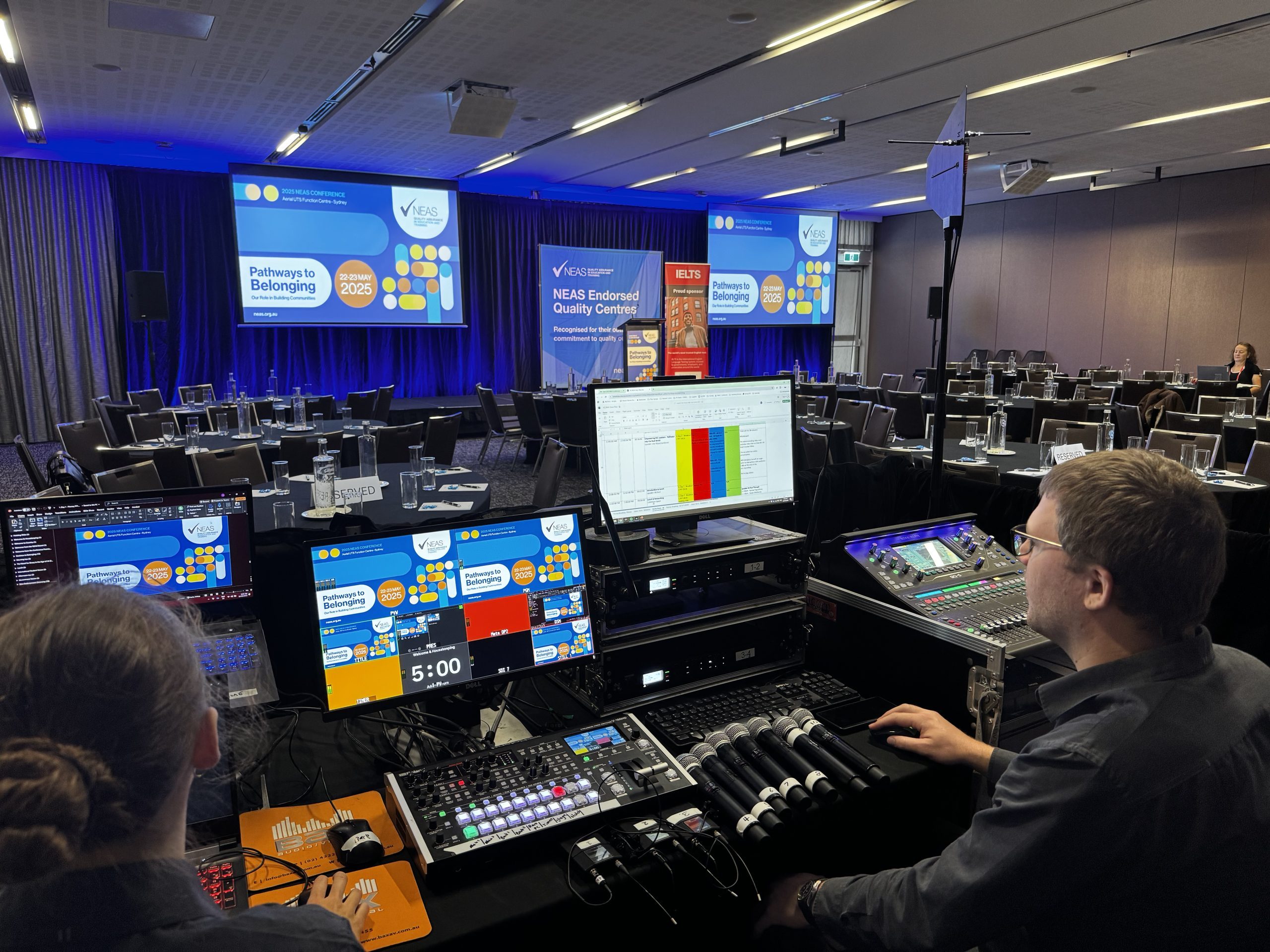 Whether it’s a one-day conference, a big product launch or a packed-out venue schedule, we bring the gear, the expertise and a persona touch to get it right; from perfectly timed keynote set ups to complex hybrid breakaway sessions, poster presentations, complicated online / offline needs, award nights or an entertainment space, we do more than run tech. We help shape unforgettable moments and we do it without a hitch!